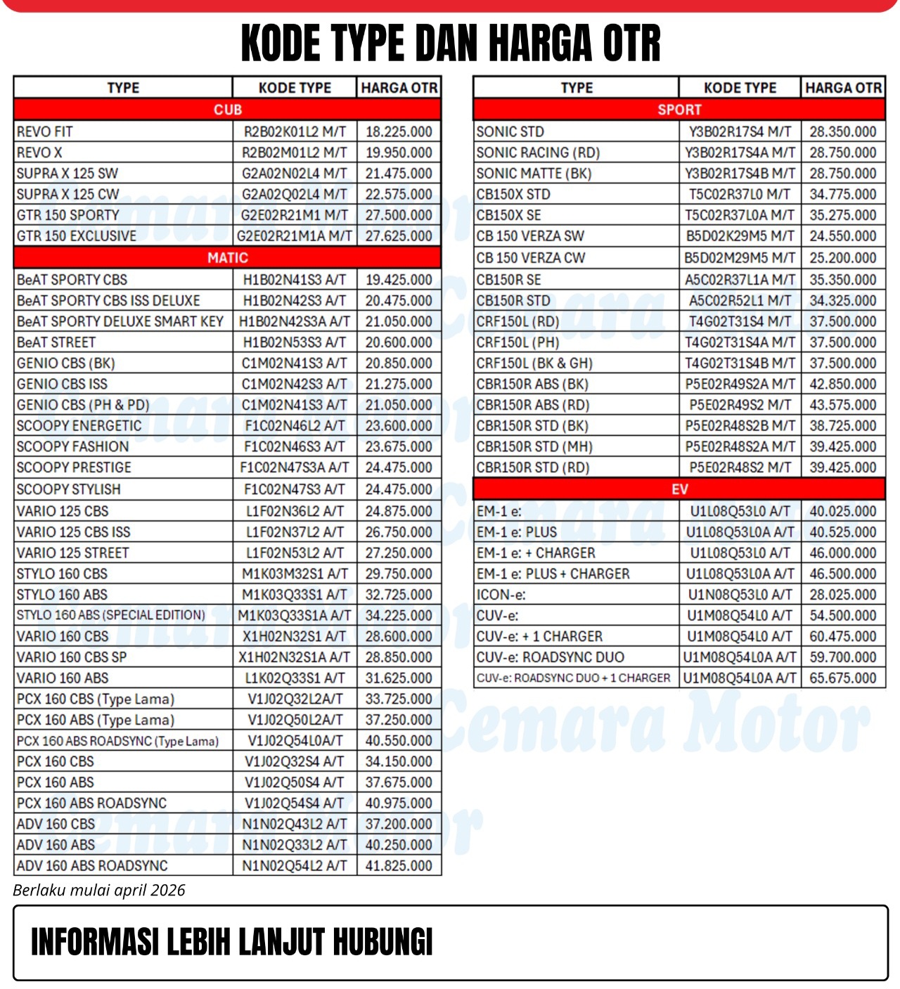 (Mohon konfirmasi kalau mau ke dealer)